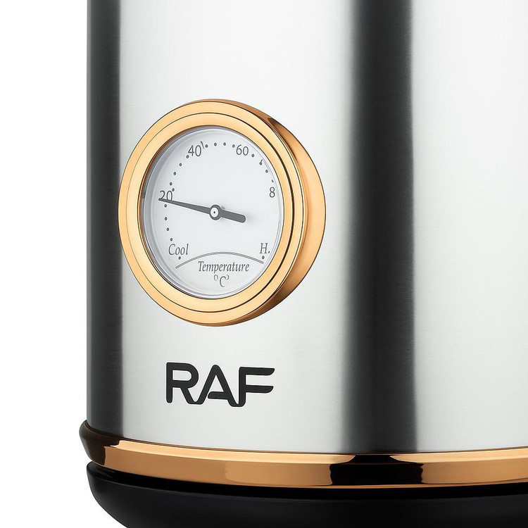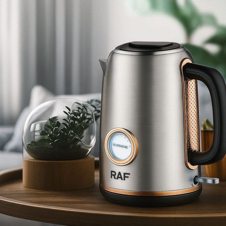طراحی و ساختار= جنس بدنه کتری برقی راف مدل R.7849 معمولا از مواد با کیفیت استیل ضد زنگ ساخته شده است که علاوه بر زنگ زدگی و مقاومت ، شفافیت و زیبایی خاصی به دستگاه میبخشد.