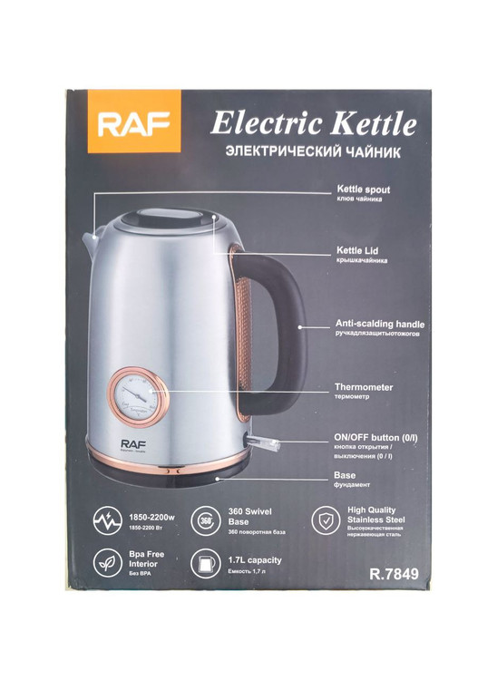 توضیحات کالا= کتری برقی راف مدل R.7849 یکی از محصولات با کیفیت و خوش ساخت این برند است که آن را به یک انتخاب عالی برای کاربران تبدیل کرده .