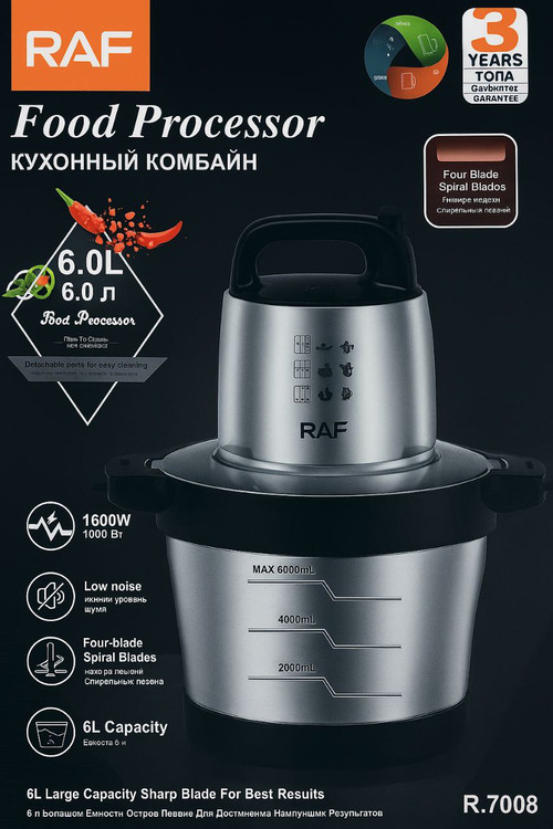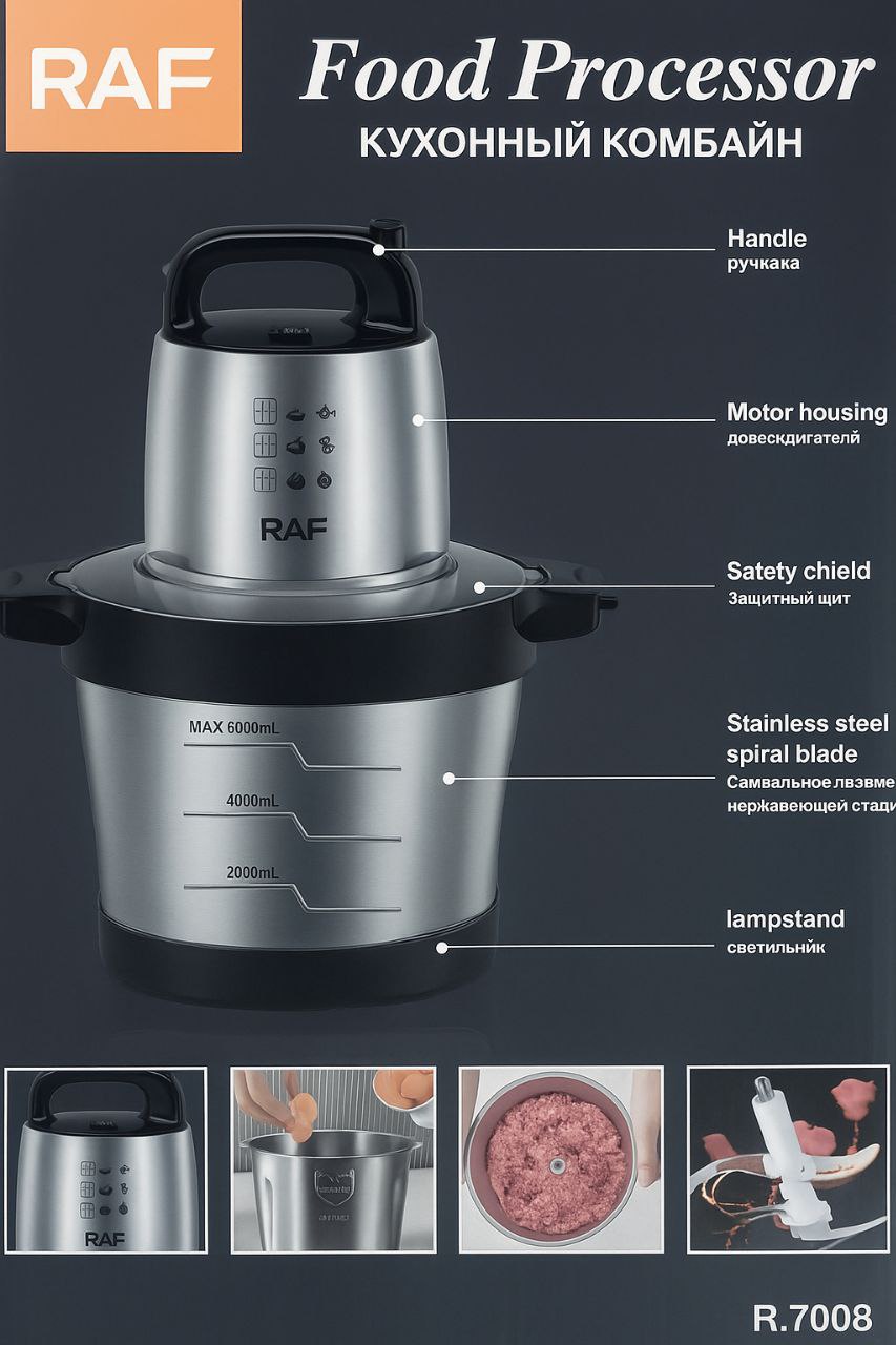 با خرید خردکن برقی RAF مدل R7008 از کالاتک استور، از ارسال سریع و خرید امن بهرهمند شوید و تجربهای حرفهای در آشپزی داشته باشید.