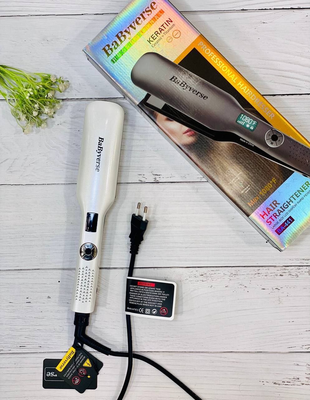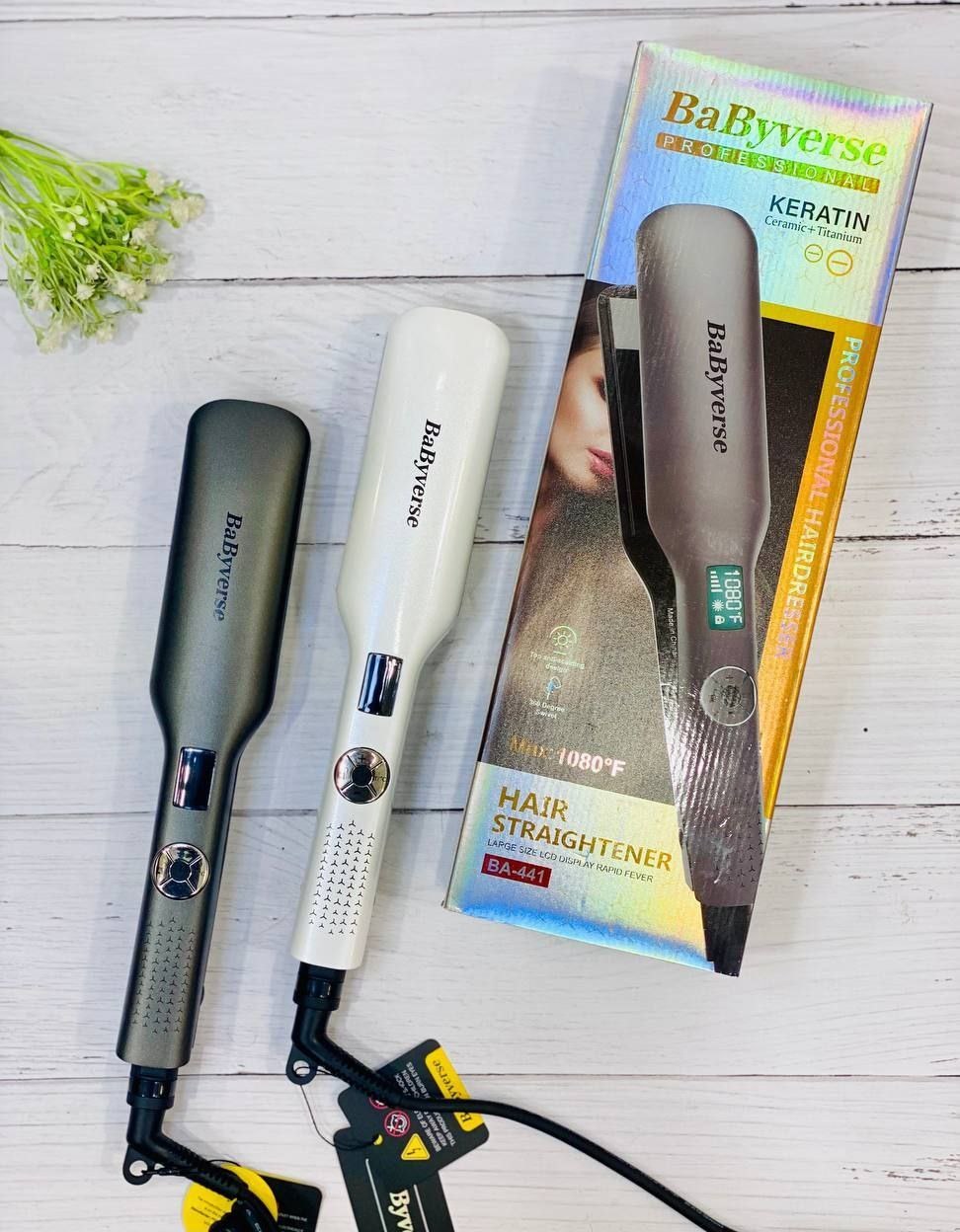 اتو مو بابی ورس مدل BA441 یکی از مدلهای حرفهای و باکیفیت برای صاف کردن موهای ضخیم و بلند است. صفحات پهن این دستگاه با روکش نانو تیتانیوم، گرما را بهصورت یکنواخت منتقل کرده و باعث صاف شدن سریعتر موها میشود.