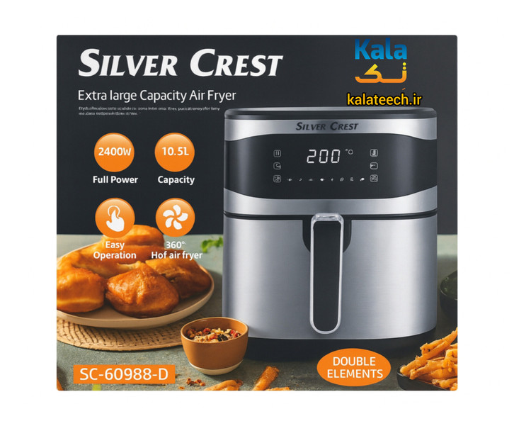 سرخ کن بدون روغن سیلور کرست مدل SC60988 با طراحی مدرن و ظرفیت بزرگ ۱۰.۵ لیتری، گزینهای حرفهای برای خانوادههای پرجمعیت است.