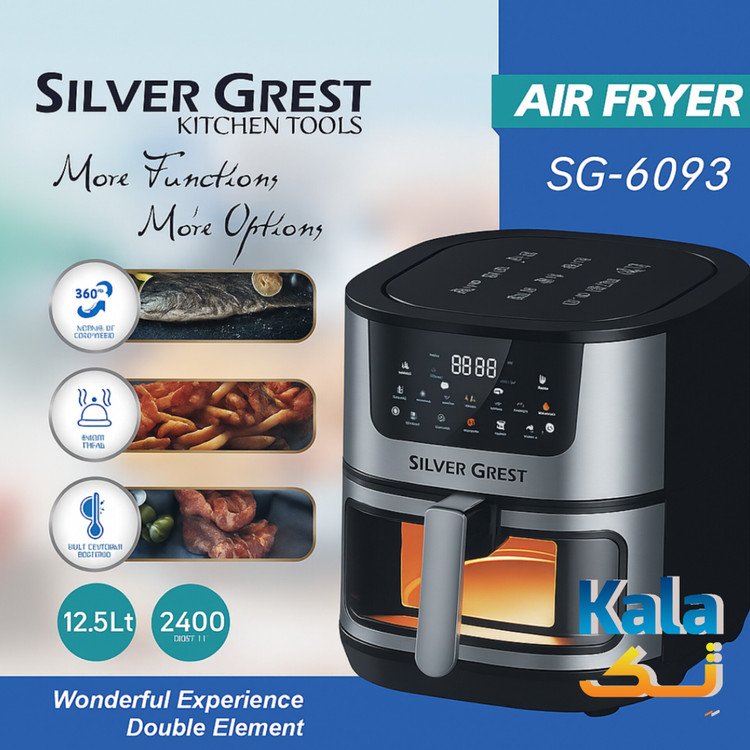 سرخ کن بدون روغن سیلور کرست مدل SG_6093 با ظرفیت بزرگ 12.5 لیتر انتخابی ایدهآل برای خانوادههای پرجمعیت است. با توان بالای 2400 وات، غذا را سریع و یکنواخت میپزد و به لطف چرخش 360 درجه، سطح غذا کاملاً برشته و ترد میشود.
