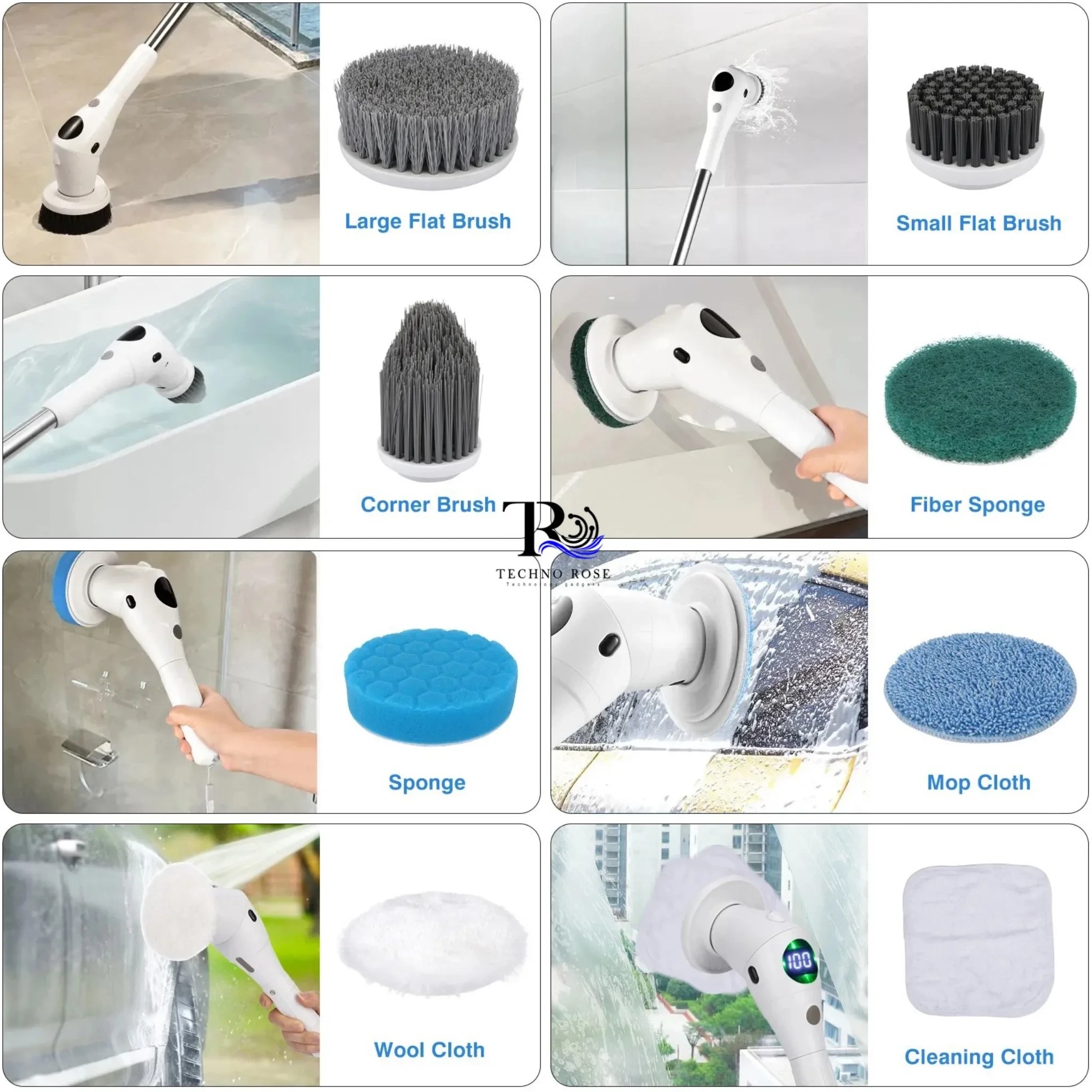 رینگ خودرو که حتی توسط کارواش هم پاک نمیشود را از بین برد و در ساخت برسها و پدها از جنسهای متفاوت مثل برس پلاستیکی و پد نانو و ید صد درصد پنبه استفاده شده است و بر خلاف سایر دستگاها دارای دسته بلند جهت دسترسی به نقاط مرتفع تر در حین نظافت مثل گوشه های سقف و شیشه جلو کامیون و کشنده میباشد نکته مهم استفاده اسان و تعویض راحت برسها میباشد در ضمن برس شستشو ظرف و پدها به نحوی طراحی گردیده که به کاربر این اجازه را میدهد بعد از مستعمل